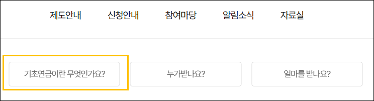 기초연금제도 소개, 대상, 혜택, 보도자료, 홍보영상을 제공하고 있습니다.