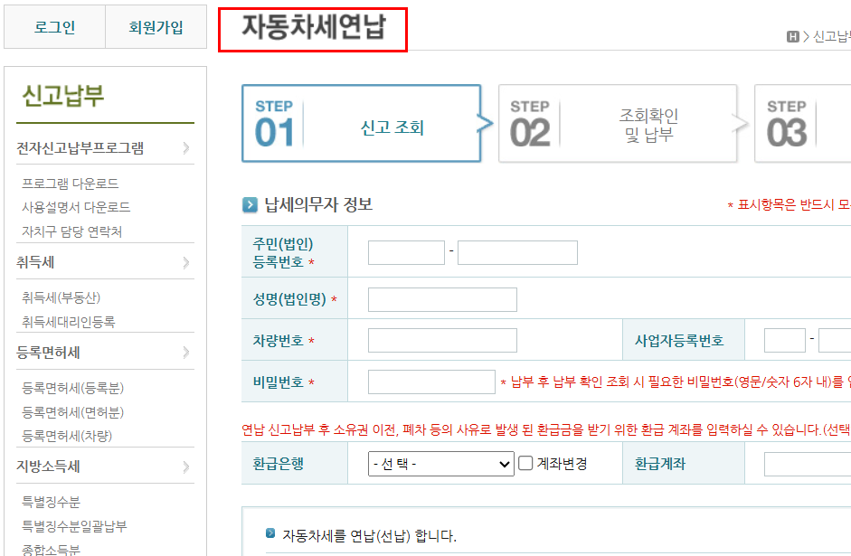 납부 시에는 고지서나 차량번호, 주민등록번호 등의 정보가 필요하므로 미리 준비하시기 바랍니다.